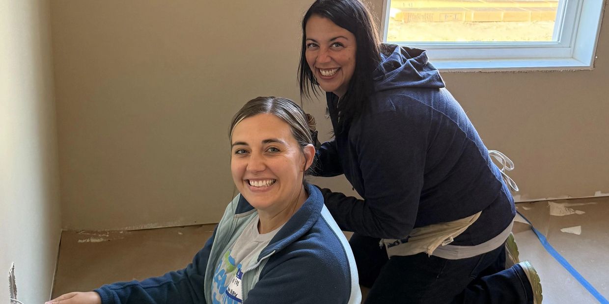 Erin Teegardin and Amber Fox from Hempy Water wire the outlets in Home 67. Photo credit: Jaelle Freeman, Habitat’s Vista
